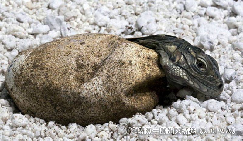 9月1日,美國(guó)圣迭戈動(dòng)物園兩只小藍(lán)鬣蜥破殼而出。藍(lán)鬣蜥是世界最瀕危的物種之一。圖片來源:中國(guó)新聞網(wǎng)