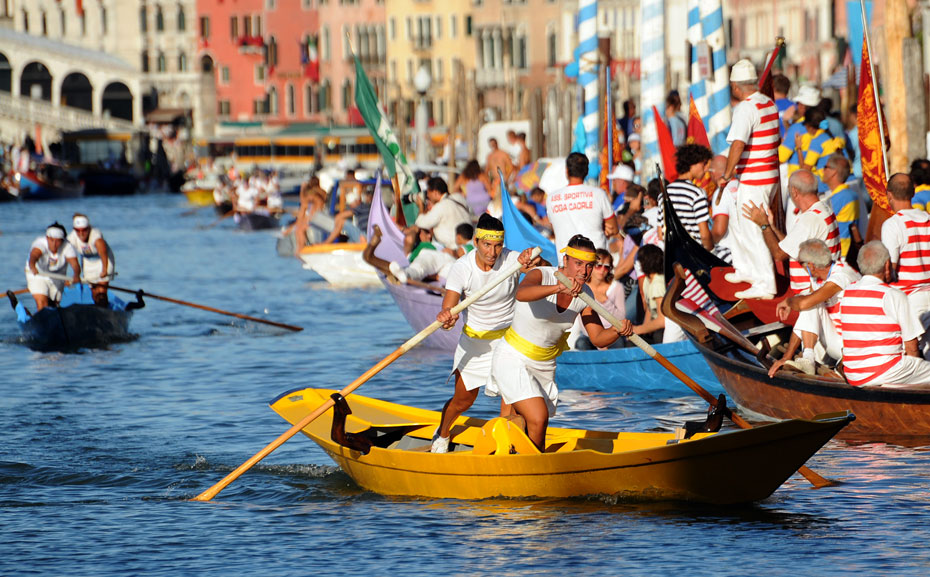 賽舟會:是意大利一項(xiàng)具有悠久歷史的節(jié)日,每年的9月第一個星期日在威尼斯大運(yùn)河上舉辦蔚為壯觀的彩船游行,隨后是剛多拉小船和其他船只的賽舟會,威尼斯的劃船好手都會聚集到大運(yùn)河上參加傳統(tǒng)賽舟會,許多人換上富有古典韻味的服裝,或在岸邊觀賽,或泛舟水上,整個城市似乎重回文藝復(fù)興時期。