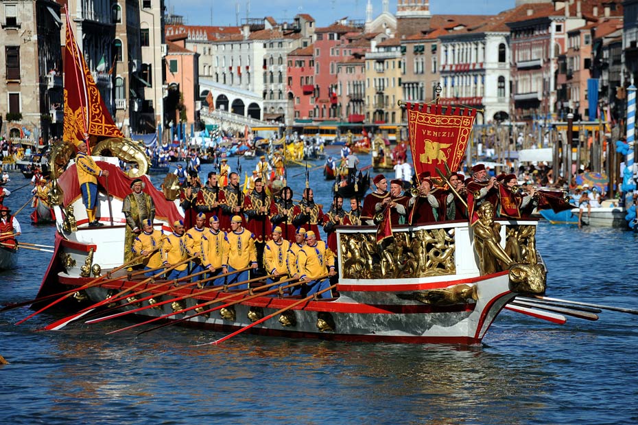 賽舟會:是意大利一項具有悠久歷史的節(jié)日,每年的9月第一個星期日在威尼斯大運河上舉辦蔚為壯觀的彩船游行,隨后是剛多拉小船和其他船只的賽舟會,威尼斯的劃船好手都會聚集到大運河上參加傳統(tǒng)賽舟會,許多人換上富有古典韻味的服裝,或在岸邊觀賽,或泛舟水上,整個城市似乎重回文藝復(fù)興時期。