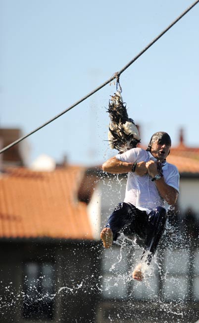 9月6日,西班牙巴斯克地區(qū)舉行傳統(tǒng)“鵝日”活動。人們用繩子將一些死鵝吊在空中,狂歡者跳起猛扯鵝頭,看誰能取下。