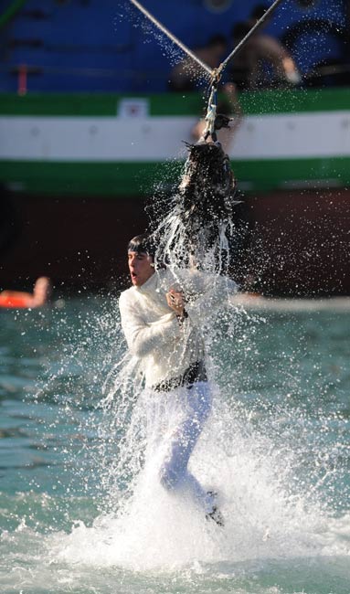 9月6日,西班牙巴斯克地區(qū)舉行傳統(tǒng)“鵝日”活動(dòng)。人們用繩子將一些死鵝吊在空中,狂歡者跳起猛扯鵝頭,看誰能取下。