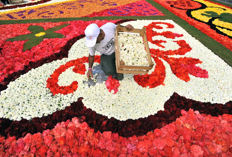 據(jù)悉,原本計(jì)劃全部使用以色列的鮮花,但由于當(dāng)?shù)氐孽r花產(chǎn)量不足,只能從布魯塞爾進(jìn)口,這批鮮花每朵花的直徑都在20厘米左右。百名志愿者們費(fèi)時(shí)7小時(shí)精心鋪成了這張花毯,這張鮮花地毯將展示三天,隨后將被生態(tài)埋葬。