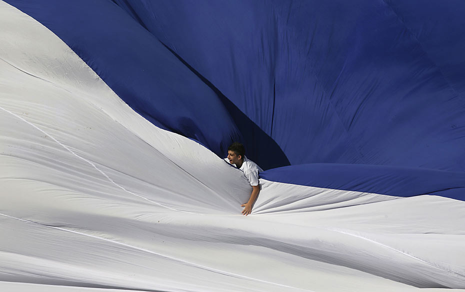 9月17日,在耶路撒冷的一個(gè)體育場(chǎng)內(nèi),一名以色列男孩在一幅巨大的、鋪展開的旗子上玩耍。它被吉尼斯世界紀(jì)錄評(píng)為世界上最大的旗子。圖片來(lái)源:中國(guó)新聞網(wǎng)