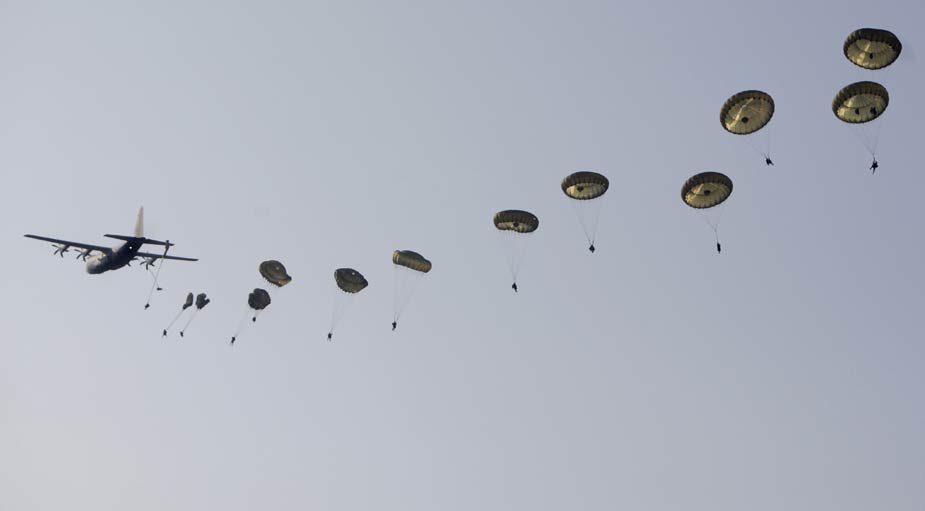 9月19日,英國空降兵在荷蘭埃德附近進行傘降表演,紀念二戰(zhàn)期間盟軍最大規(guī)模的空降作戰(zhàn)——“市場花園”行動65周年。圖片來源:中國新聞網