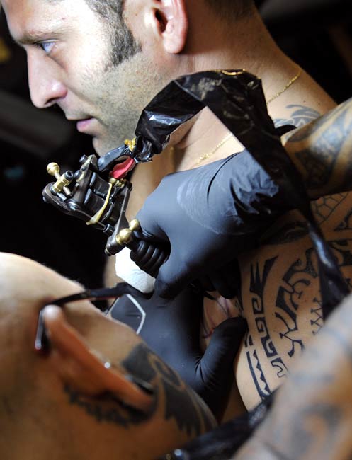 法國(guó)巴黎9月20日舉行“紋身藝術(shù)節(jié)”,吸引了成百上千紋身藝術(shù)大師到場(chǎng)獻(xiàn)藝。圖片來(lái)源:中國(guó)新聞網(wǎng)
