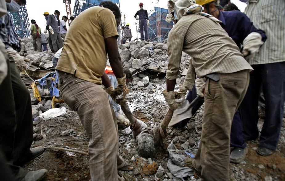印度中部一座在建電廠的巨型煙囪23日下午發(fā)生倒塌,目前估計已有至少100人罹難。圖片來源:中國新聞網(wǎng)