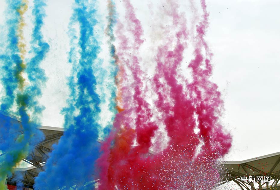 9月26日,第七屆中國花卉博覽會在北京順義主場館廣場隆重開幕,現(xiàn)場彩帶漫天飛舞“花雨”從天而降,以及異彩紛呈的表演成為一道豐盛的視覺大餐。中新網(wǎng)記者 金碩 攝