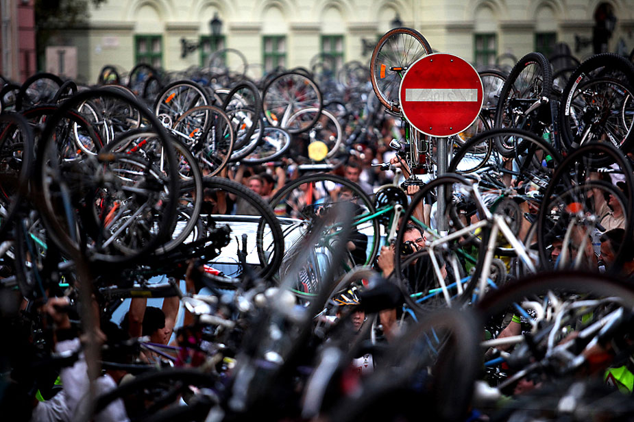 22日是世界無車日,在布達(dá)佩斯的市政廳外,人們高舉自行車,參加在這里舉行的“單車臨界點(diǎn)”集會(huì)。這場(chǎng)活動(dòng)旨在推廣更環(huán)保的交通方式。圖片來源:中國(guó)新聞網(wǎng)