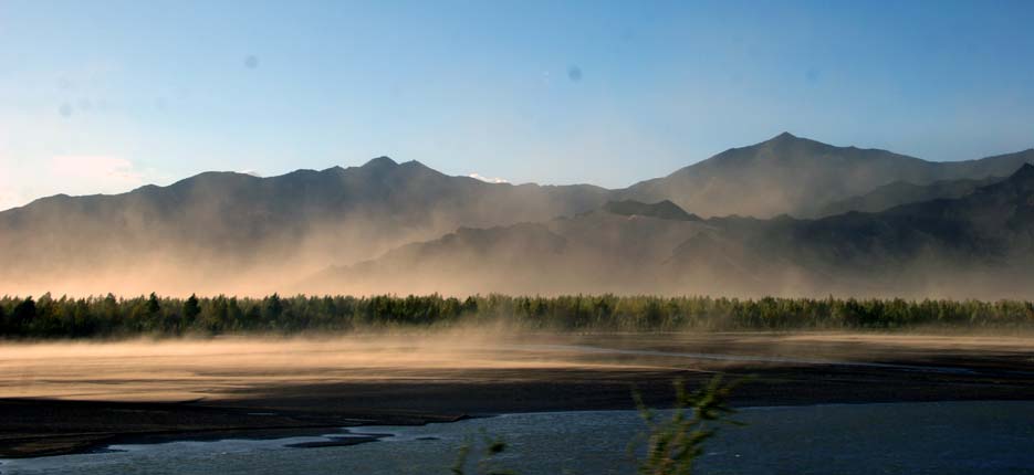 風沙揚起,雅魯藏布江一片壯闊。