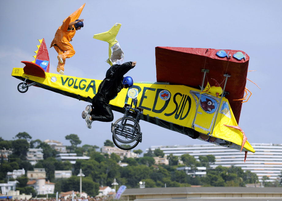 9月27日,法國馬賽趣味飛行器大賽舉行。比賽規(guī)則簡單,誰能在落水之前飛得更遠(yuǎn)誰就是冠軍,但參賽選手絞盡腦汁,把自己的飛行器扮成各種古怪摸樣。圖片來源:中國新聞網(wǎng)