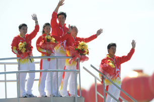 劉翔李寧亮相彩車