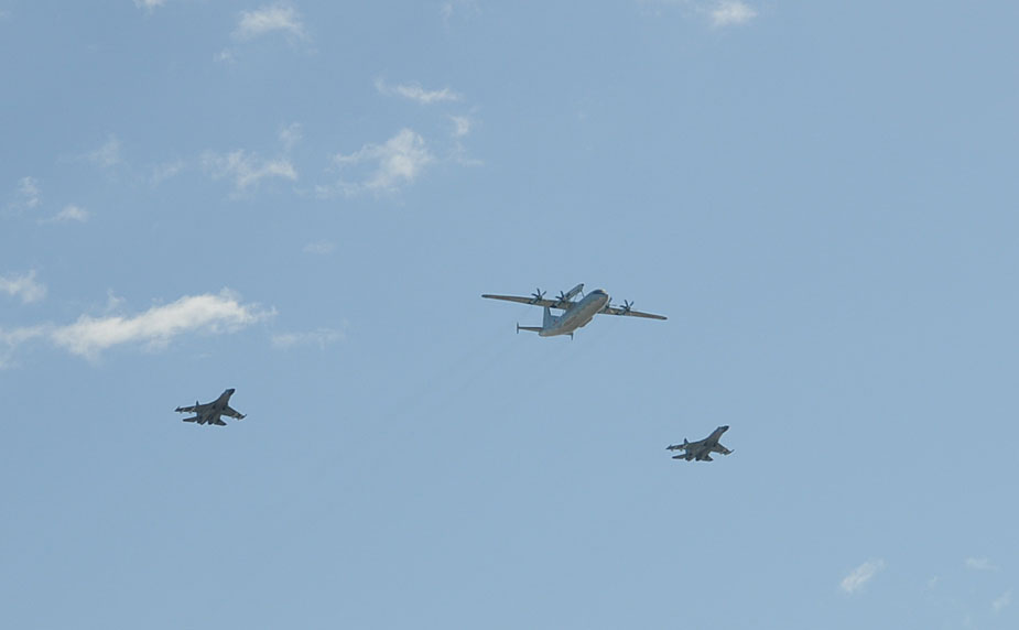 2009年10月1日,中華人民共和國成立60周年慶祝大會(huì)在北京天安門廣場(chǎng)舉行。圖為預(yù)警機(jī)梯隊(duì)通過天安門廣場(chǎng)上空。中新網(wǎng)記者 攝