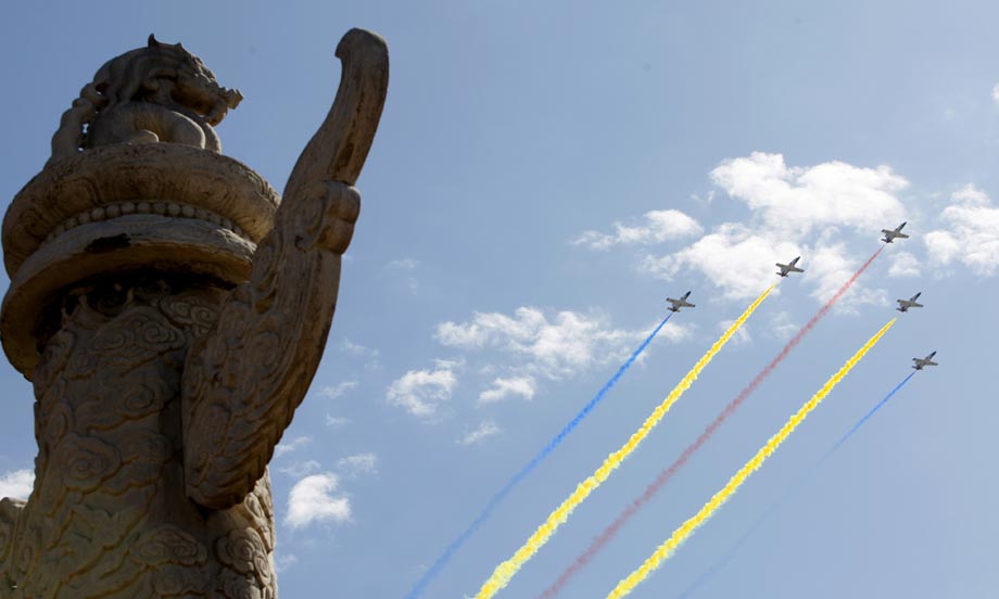 2009年10月1日,首都各界慶祝中華人民共和國成立60周年大會(huì)在北京舉行?罩蟹疥(duì)在北京上空駛過。