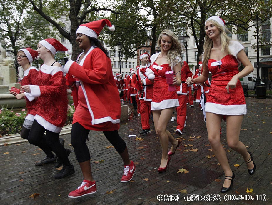 10月6日,英國(guó)倫敦市中心100多位圣誕老人為籌集乳腺癌護(hù)理善款而參加歡樂跑活動(dòng)。來(lái)源:中國(guó)新聞網(wǎng)