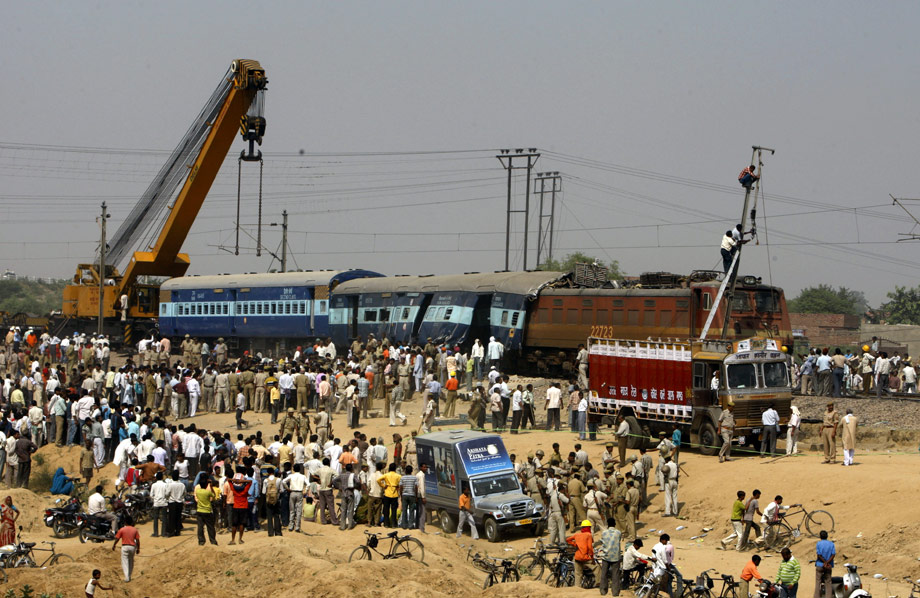 印度北方邦21日凌晨發(fā)生兩列火車相撞事故, 一輛來(lái)自西南部果阿的快運(yùn)列車在馬圖拉附近與一列來(lái)自西部拉賈斯坦邦梅瓦爾的快運(yùn)列車相撞,造成15人死亡。圖為事故現(xiàn)場(chǎng)。來(lái)源:中國(guó)新聞網(wǎng)