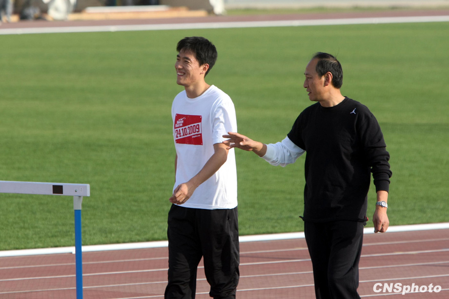 10月22日下午,“飛人”劉翔亮相濟南奧體中心田徑訓(xùn)練場,在教練孫海平的帶領(lǐng)下,輕松備戰(zhàn)全運會。中新社發(fā) 湯彥俊 攝