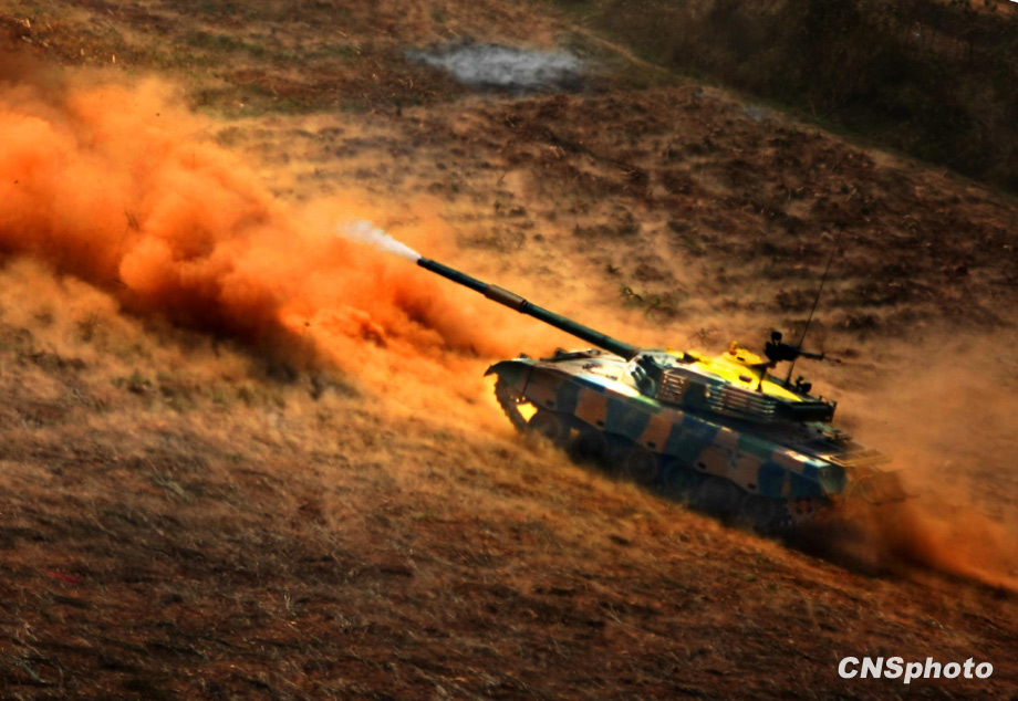 解放軍“前鋒-二00九A”演習(xí),二十二日在濟(jì)南軍區(qū)某合同戰(zhàn)術(shù)訓(xùn)練基地進(jìn)行陸空聯(lián)合火力打擊實(shí)兵實(shí)彈演練。中新社發(fā) 宋吉河 攝