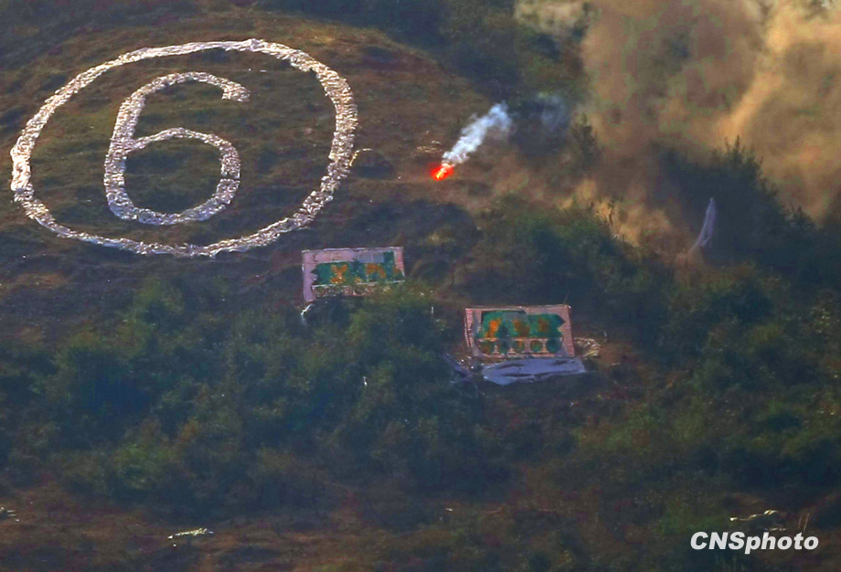 解放軍“前鋒-二00九A”演習(xí),二十二日在濟南軍區(qū)某合同戰(zhàn)術(shù)訓(xùn)練基地進行陸空聯(lián)合火力打擊實兵實彈演練。中新社發(fā) 宋吉河 攝