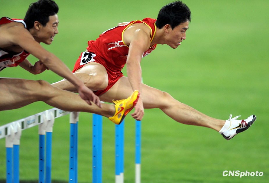 10月25日,在全運(yùn)會田徑男子110米欄決賽中,上海代表團(tuán)選手、“中國飛人”劉翔以13秒34的成績勇奪冠軍,同時(shí)也成就了其全運(yùn)會該項(xiàng)目三連冠的偉業(yè)。中新社發(fā) 陳文 攝