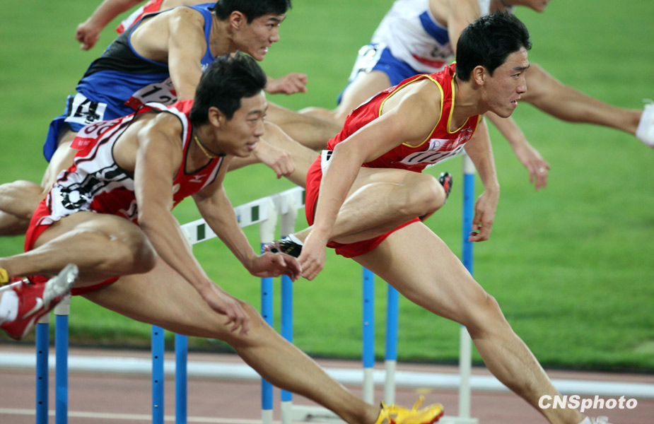 10月25日,在全運(yùn)會(huì)田徑男子110米欄決賽中,上海代表團(tuán)選手、“中國(guó)飛人”劉翔以13秒34的成績(jī)勇奪冠軍,同時(shí)也成就了其全運(yùn)會(huì)該項(xiàng)目三連冠的偉業(yè)。中新社發(fā) 湯彥俊 攝