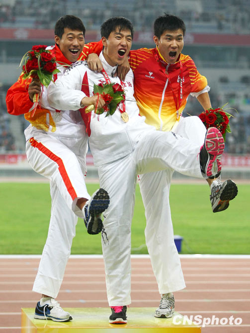10月25日,在全運(yùn)會田徑男子110米欄決賽中,上海代表團(tuán)選手、“中國飛人”劉翔以13秒34的成績勇奪冠軍,同時(shí)也成就了其全運(yùn)會該項(xiàng)目三連冠的偉業(yè)。