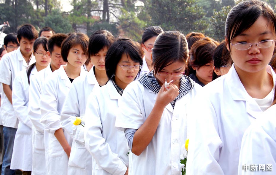 師生代表含淚吊唁。曾尉 攝
