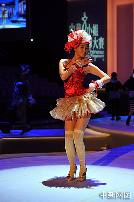10月31日晚,“2009中華小姐環(huán)球大賽”總決賽上,12名入圍總決賽的佳麗身著迷你裙大秀性感爵士舞。中新網(wǎng)記者 金碩 攝