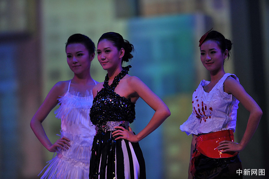 10月31日晚,“2009中華小姐環(huán)球大賽”總決賽上,12名入圍總決賽的佳麗身著各式服裝展現(xiàn)曼妙身姿,此外大賽還設(shè)計(jì)了一套“廢品服裝”呼吁環(huán)境保護(hù)。中新網(wǎng)記者 金碩 攝