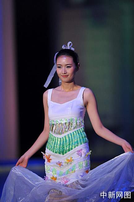 10月31日晚,“2009中華小姐環(huán)球大賽”總決賽上,12名入圍總決賽的佳麗身著各式服裝展現(xiàn)曼妙身姿,此外大賽還設計了一套“廢品服裝”呼吁環(huán)境保護。中新網(wǎng)記者 金碩 攝