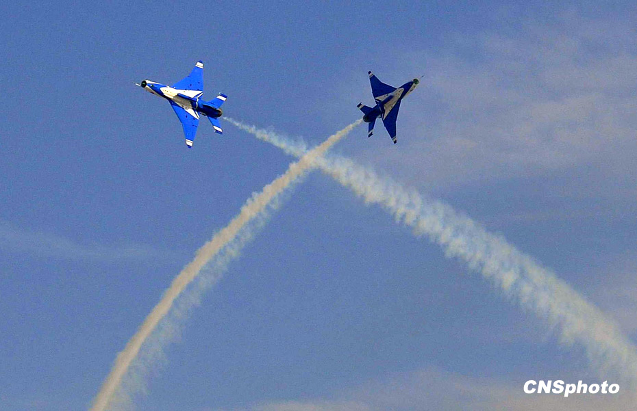 圖為殲七表演的空中芭蕾。中新社發(fā) 潘旭臨 攝