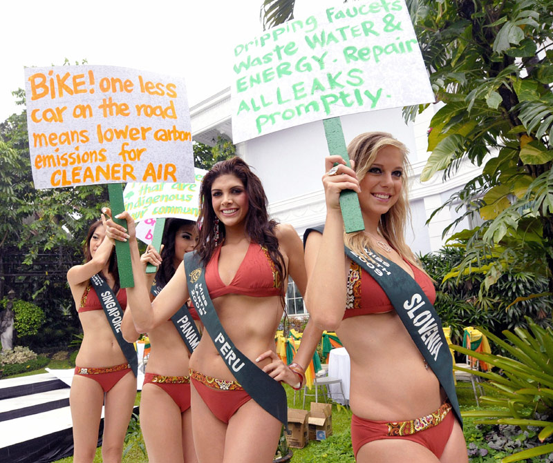 2009世界綠色環(huán)保大使小姐決賽在菲律賓進行,來自世界各地的90名佳麗參與角逐。世界綠色環(huán)保大使(地球小姐)評選,是全世界唯一以“綠色環(huán)保”為主題注冊的國際頂級權(quán)威大賽,由菲律賓總統(tǒng)阿羅約創(chuàng)始。圖片來源:中國新聞網(wǎng)