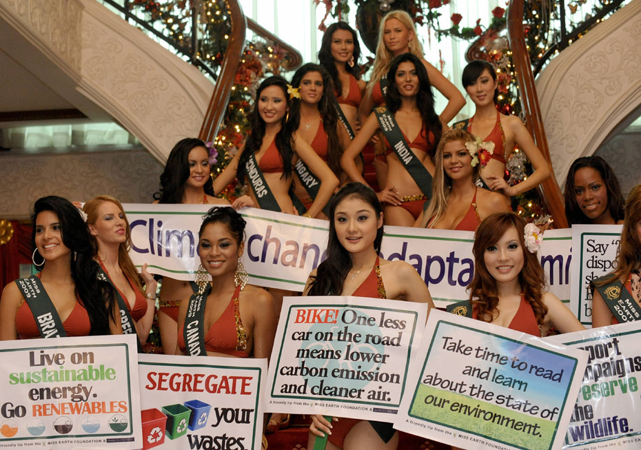 2009世界綠色環(huán)保大使小姐決賽在菲律賓進行,來自世界各地的90名佳麗參與角逐。世界綠色環(huán)保大使(地球小姐)評選,是全世界唯一以“綠色環(huán)!睘橹黝}注冊的國際頂級權(quán)威大賽,由菲律賓總統(tǒng)阿羅約創(chuàng)始。圖片來源:中國新聞網(wǎng)