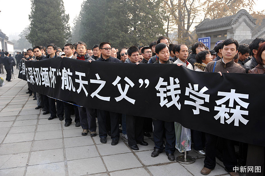 11月6日,“中國航天之父”錢學(xué)森的追悼會在北京八寶山舉行。各界民眾自發(fā)趕來為錢老送行。圖片來源:中國新聞網(wǎng)