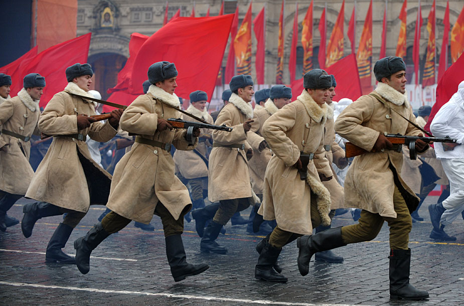 11月7日,俄羅斯士兵身穿二戰(zhàn)時期的軍服在莫斯科紅場舉行閱兵閱兵式紀念1941年紅場閱兵。圖片來源:中國新聞網(wǎng)