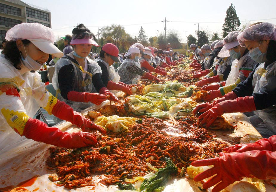 韓國(guó)數(shù)千民眾操場(chǎng)上集體做泡菜