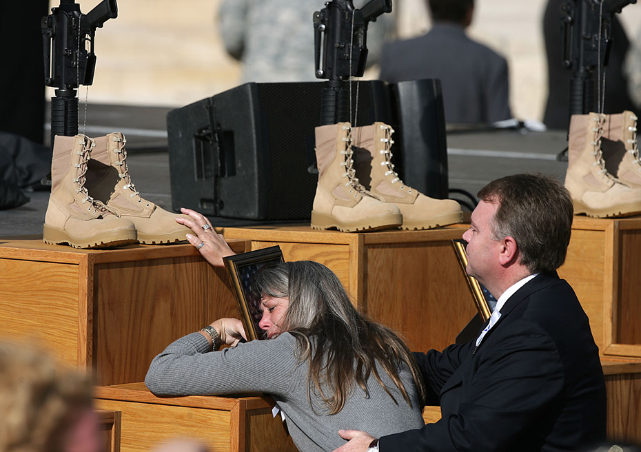 2009年11月10日,美國德克薩斯州胡德堡陸軍基地舉行儀式悼念槍擊案遇難者。 圖片來源:中國新聞網(wǎng)