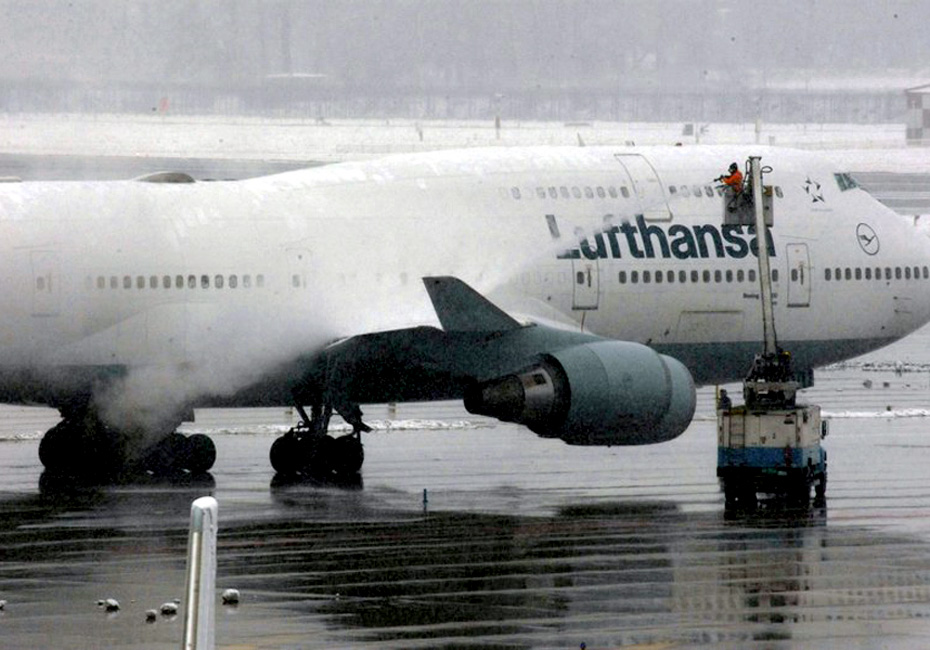 11月12日,由于雪天霧大機場好多航班延誤或取消,機場工作人員了為了保證游客出行的順暢,一大早就為停在停機坪待飛的飛機作融雪處理。