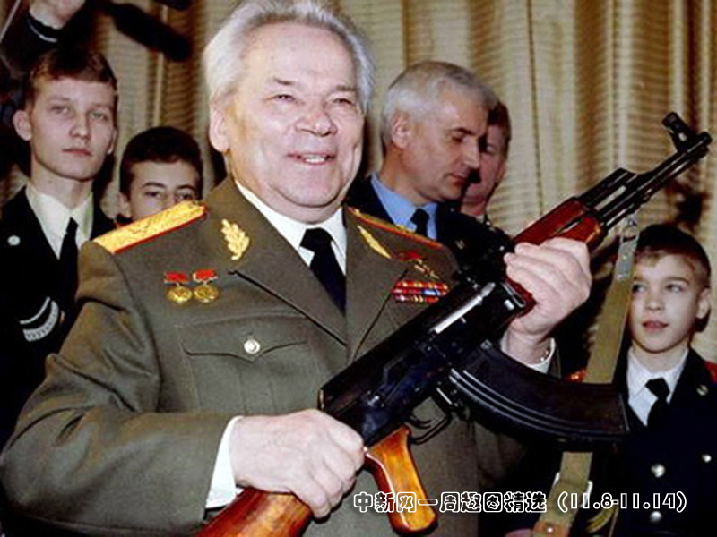 11月11日,AK-47突擊步槍的發(fā)明者米哈伊爾·卡拉什尼科夫在俄羅斯莫斯科慶祝90歲生日。>>點(diǎn)擊觀看詳細(xì)內(nèi)容