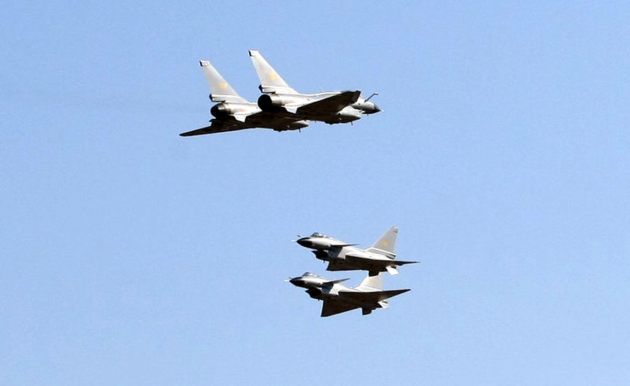 慶祝中國人民解放軍空軍成立60周年飛行表演,11月15日上午在北京沙河機場舉行。表演按八一飛行表演隊4架殲-10飛機表演12個動作和6架殲-7GB飛機表演15個動作,分四機對頭交叉、四機菱形隊大坡度盤旋、單機小速度平飛等27個動作,其中四機對頭交叉動作是這次表演中技術(shù)難度較大的動作之一,這是國產(chǎn)三代飛機和國產(chǎn)二代飛機首次同場競技表演。圖為殲10戰(zhàn)機編隊在進(jìn)行特技表演。王穎 攝