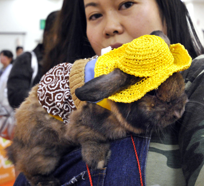 11月15日,在日本舉行了一場兔子時裝大賽,眾多愛好者把自己的兔子打扮的時髦靚麗前來參賽。