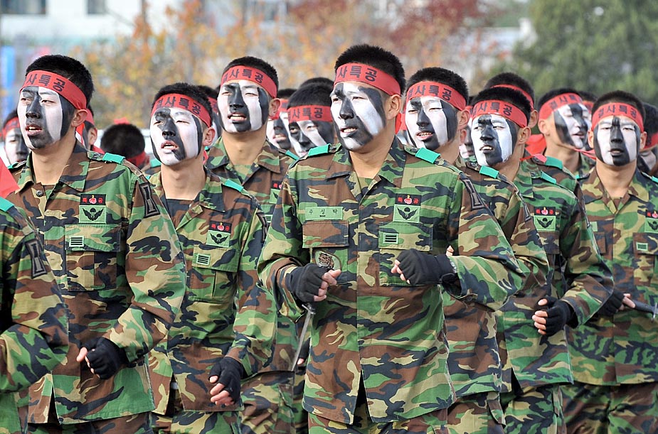 11月16日,韓國(guó)在距首爾以北30公里處舉行了由特種兵參與的反恐演習(xí)。圖片來(lái)源:中國(guó)新聞網(wǎng)