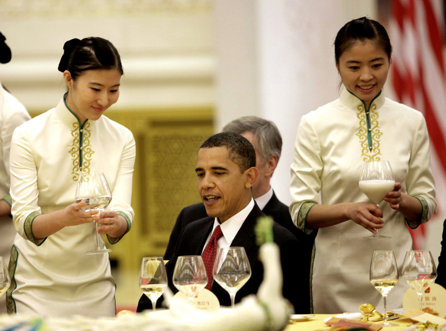 國家主席胡錦濤11月17日晚在北京人民大會舉行盛大宴會,歡迎來華訪問的美國總統(tǒng)奧巴馬。