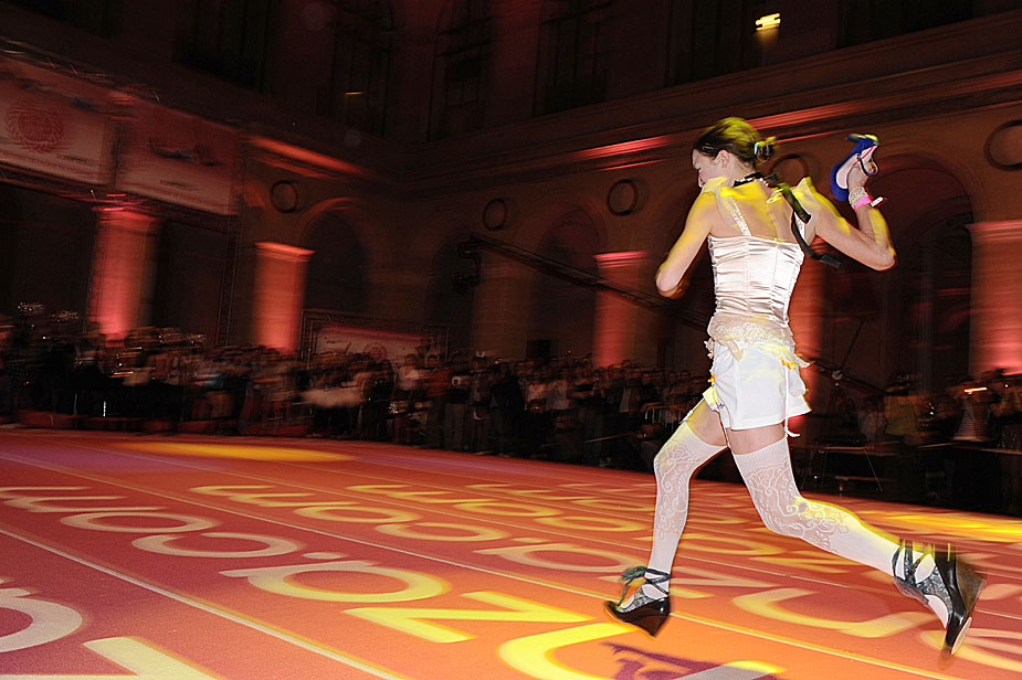 11月20日,法國巴黎舉行了有趣的室內(nèi)高跟鞋賽跑比賽,總共32支隊(duì)伍96人一爭(zhēng)高下。圖片來源:中國新聞網(wǎng)