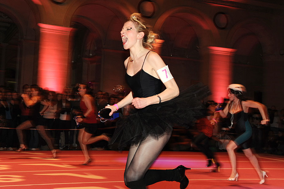 11月20日,法國巴黎舉行了有趣的室內(nèi)高跟鞋賽跑比賽,總共32支隊伍96人一爭高下。圖片來源:中國新聞網(wǎng)