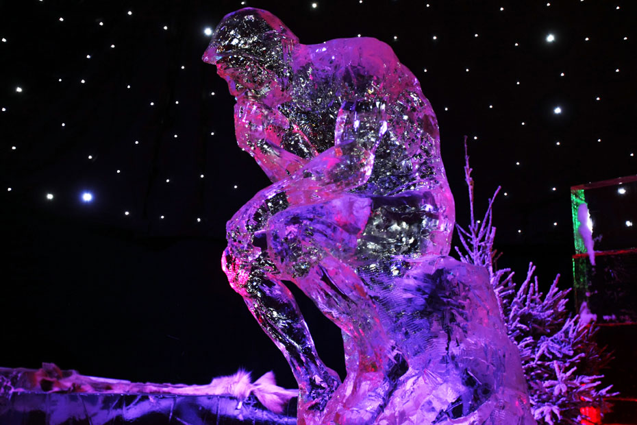 11月23日,為期一個月的“冰之魔術(shù)”藝術(shù)展在法國巴黎香榭麗舍開幕,16位藝術(shù)家利用440噸冰雕刻出精美的巴黎地標建筑和著名藝術(shù)家羅丹的“思想者”雕塑。圖片來源:中國新聞網(wǎng)