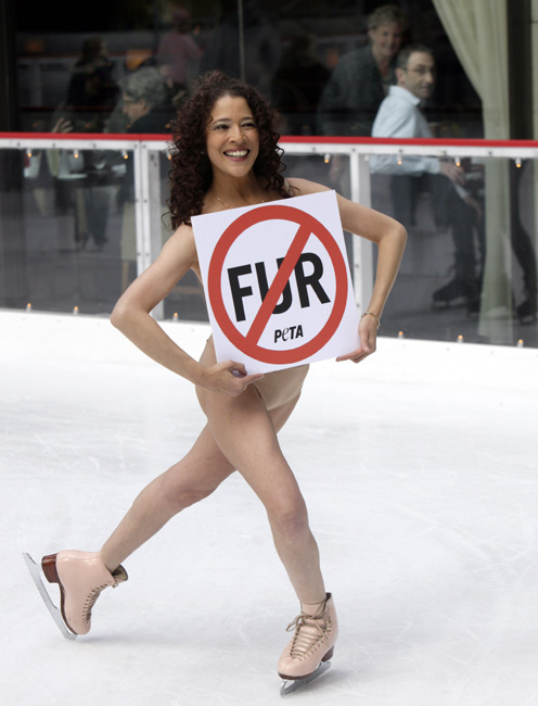 11月24日,美國花樣滑冰的傳奇人物、1979年世界花滑錦標賽冠軍得主芭比洛尼在紐約洛克菲勒廣場復(fù)出“裸滑”。這次表演是為了支持善待動物協(xié)會的反對皮草行動。