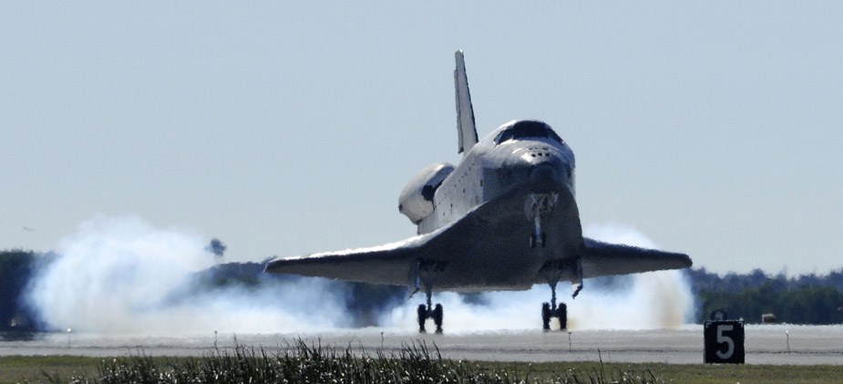 美國“阿特蘭蒂斯”號航天飛機(jī)27日平安降落在佛羅里達(dá)州肯尼迪航天中心,結(jié)束了為期11天的國際空間站之旅。圖片來源:中國新聞網(wǎng)