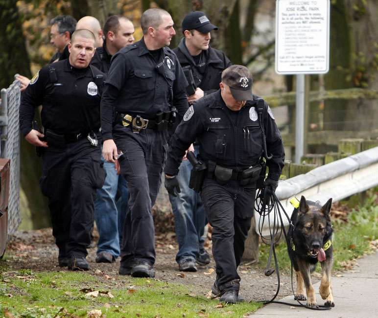 11月29日,美國(guó)4名警察在華盛頓州空軍基地附近一間咖啡館被兩名槍手槍擊,4人當(dāng)場(chǎng)死亡。美國(guó)軍方派遣反恐特警小組展開(kāi)大規(guī)模追查。圖片來(lái)源:中國(guó)新聞網(wǎng)