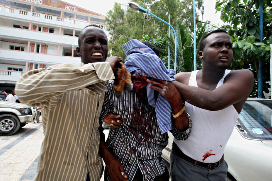 索首都摩加迪沙一家飯店3日發(fā)生的自殺炸彈襲擊事件至少已造成57人死亡,另有200多人受傷。 據(jù)索馬里官員稱,爆炸發(fā)生在該市南部政府控制區(qū)的一座飯店內(nèi)。當(dāng)時,多名政府高官正出席在飯店內(nèi)舉行的大學(xué)畢業(yè)典禮暨出國留學(xué)生歡送儀式。死者中包括索馬里衛(wèi)生部長、教育部長和高等教育與文化部長。另外,青年與體育部長在爆炸中受重傷。