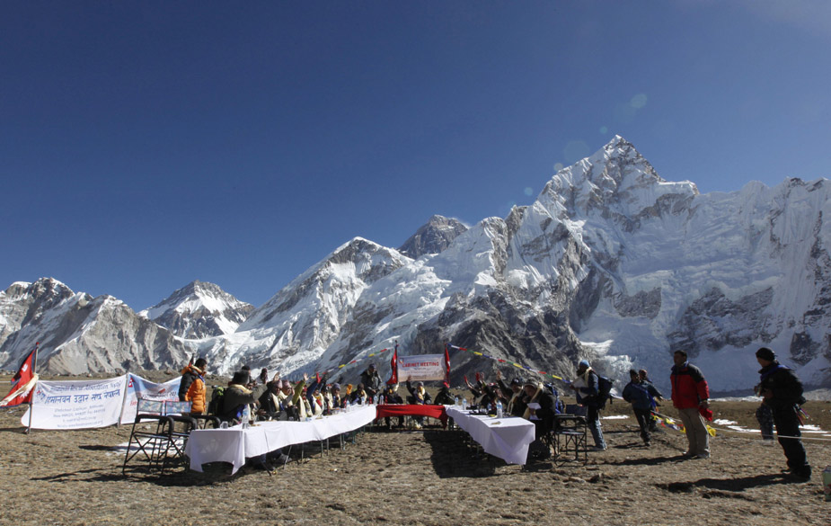 12月4日,尼泊爾總理和22位部長在喜馬拉雅山海拔5262米的高度舉行內(nèi)閣會(huì)議,討論全球變暖對(duì)喜馬拉雅山的影響。呼吁人們切實(shí)采取行動(dòng),保護(hù)環(huán)境。